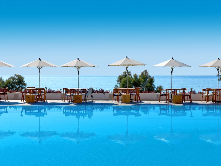 Kom naar het 5-sterrenhotel Atlantica Caldera Palace voor een onvergetelijke tijd; met een eindeloos aanbod vol vermaak! Je dagen zijn hier gevuld met zwemplezier, culinair vuurwerk, lichamelijke ontspanning en heerlijke drankjes. Die je bestelt bij de 5 verschillende bars of het café. Laat je vermaken met avondshows die het enthousiaste animatieteam verzorgt. Terwijl jij lekker gaat fitnessen; is er voor de kids een apart kinderbad en ook een miniclub. Zo vermaakt iedereen zich, tijdens deze geweldige gezinsvakantie bij Atlantica Caldera Palace. Wanneer kom jij met je familie richting Analipsi? Reserveer nu jouw prachtige kamer!